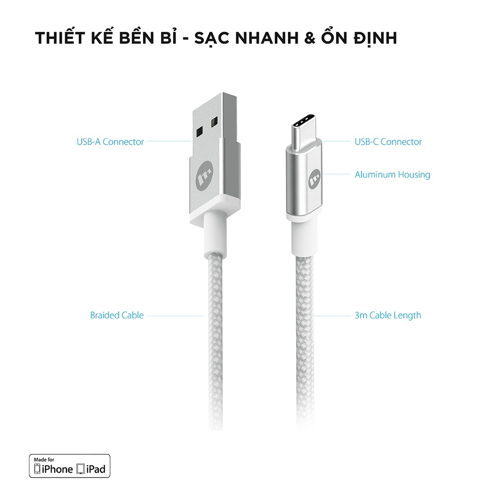 Đánh giá Cáp USB-A to USB-C Mophie 3M