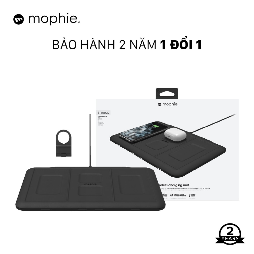ĐẾ SẠC MOPHIE 4IN1 với thiết kế sang trọng, cao cấp, hỗ trợ sạc không dây chuẩn Qi cho công suất lên tới 10W, cho phép sạc không dây tối đa lên tới 4 thiết bị cùng một lúc, trang bị thêm cổng sạc Type A 5W, giá đứng cho Apple Watch.