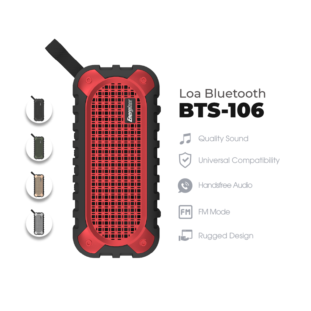 Với thiết kế chất liệu nhựa cao cấp bên ngoài, BTS-106 sở hữu tính năng chống sốc nhẹ. Người dùng thoải mái tham gia các hoạt động ngoài trời như camping, picnic, leo núi, chạy bộ khi đeo loa trên vai hay treo tại các địa điểm dừng chân